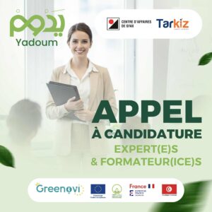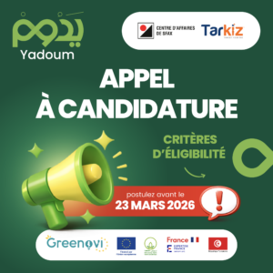 Contexte : Dans le cadre du programme YADOUM, mis en œuvre par le Centre d’Affaires de Sfax en partenariat avec Tarkiz, soutenu par Greenov’i, projet financé par l’Union européenne dans le cadre du programme Tunisie Verte & Durable, mis en œuvre par Expertise France en collaboration avec le CITET, le Ministère de l’Economie et de la